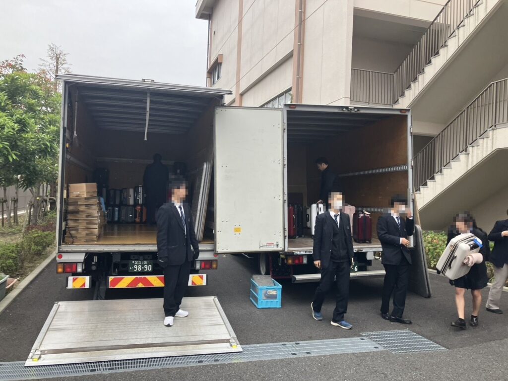 荷物の積み込みで一番多いのは、生徒さんの登校時間に合わせて